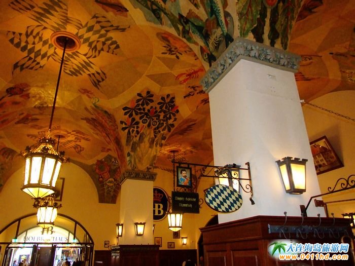 德國慕尼黑HOFBRAUHAUS啤酒屋有著濃郁歐洲風(fēng)格特色的德國建筑,啤酒屋始建于1589年是當(dāng)時的皇家啤酒廠。整幢建筑最多可容納5000人;三樓是大宴會廳,可容納1000人一起歡飲。這里的啤酒屋供應(yīng)其我們很熟悉的HB啤酒。每天都有近萬升的啤酒從這兒運(yùn)往大大小小的酒鋪、酒館、宴會廳以及啤酒園。